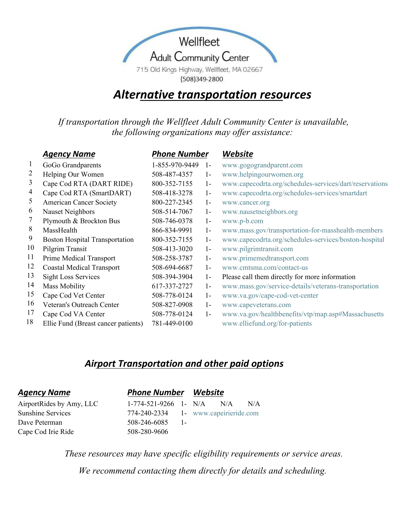 The Wellfleet Council on Aging (COA) is dedicated to providing safe, dependable transportation for residents aged 60 and older to general medical appointments within Barnstable County. To protect the well-being of both passengers and staff, all riders must be able to walk independently, clearly disclose any use of mobility aids, and confirm they can enter and exit both their home and the COA vehicle without assistance. Individuals who are unable to ambulate or require physical support for transfers must be accompanied by a personal aide. For safety and liability reasons, COA staff are strictly prohibited from lifting, transferring, or physically stabilizing clients—including the use of gait belts—and may not perform household tasks or personal errands. This service is available Monday through Friday and is primarily intended for general medical appointments.